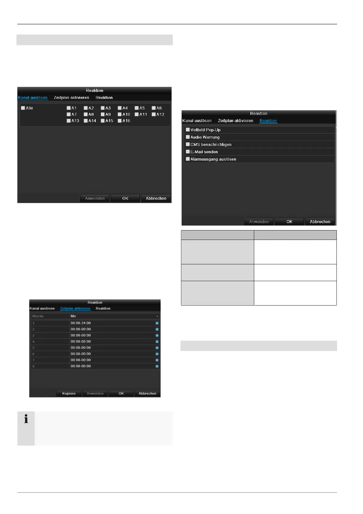 Reaktion eingestellten Reaktionen auslösen sollen.