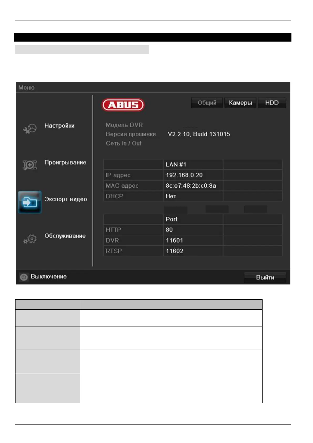 Переход в меню Конфигурация, камера, запись, HDD,