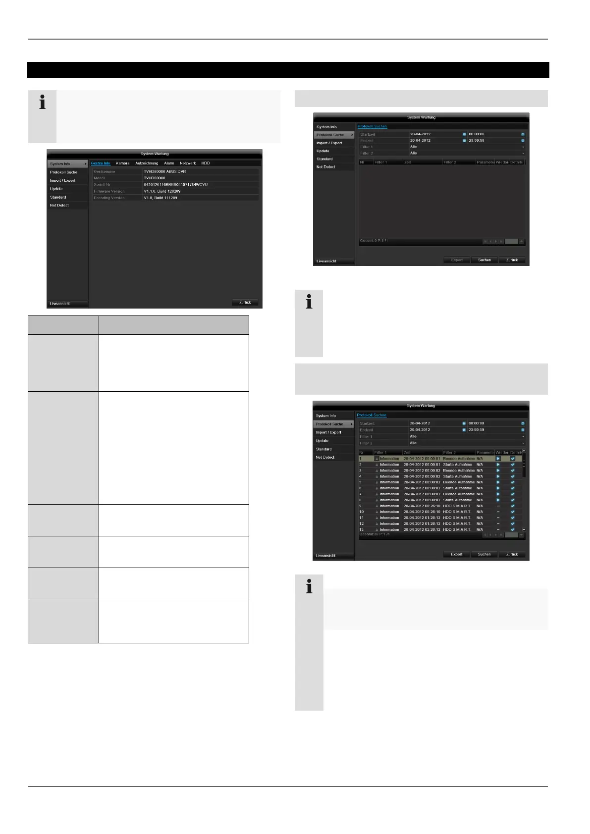 Abus TVHD80100 - Техническое Обслуживание; Сведения О Системе; Протокол Поиск