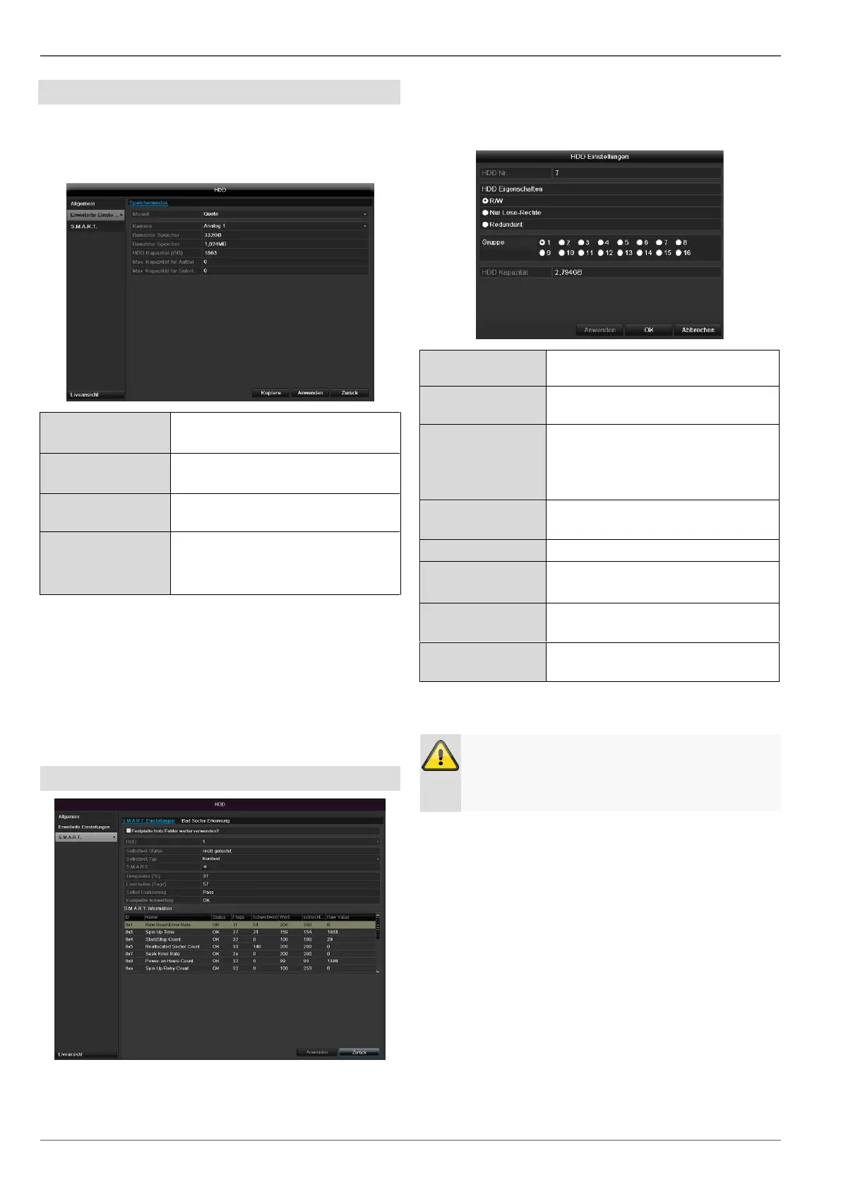Festplatteneinstellungen der Kameras