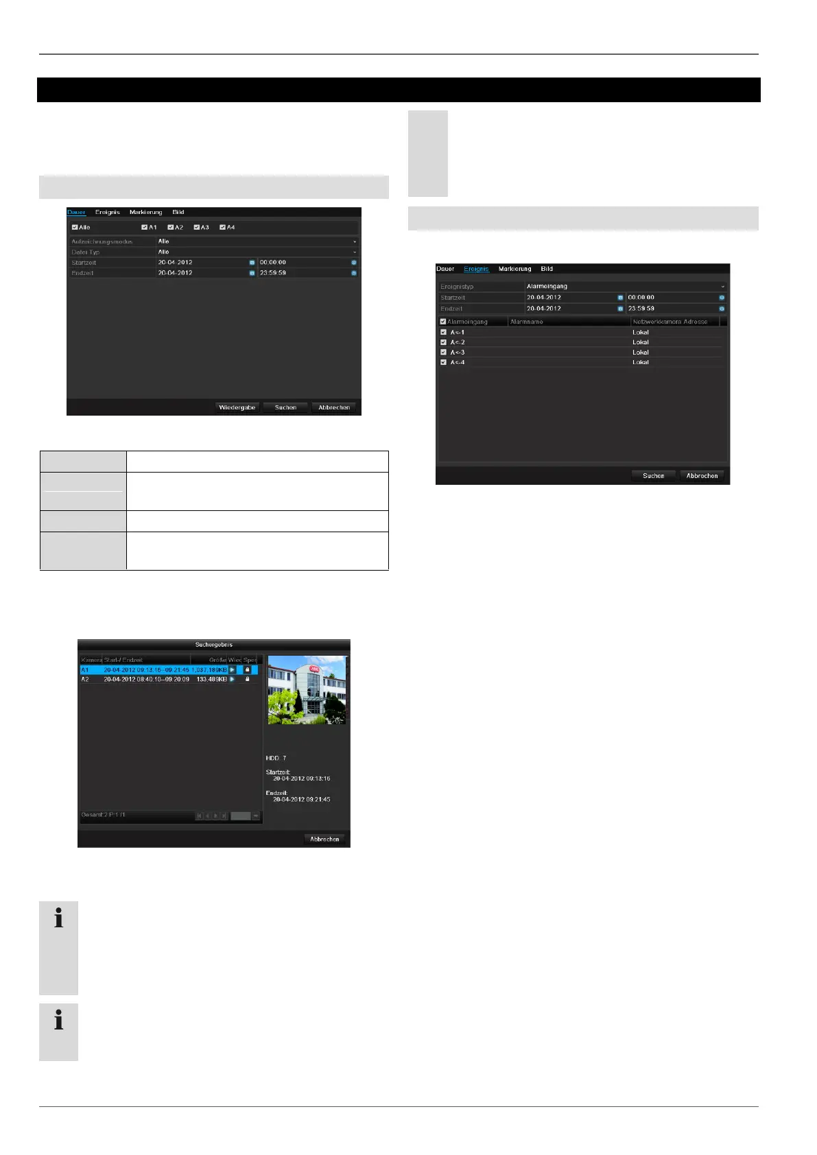 Wählen Sie bei ‚Ereignistyp’, ob nach Aufnahmen bei