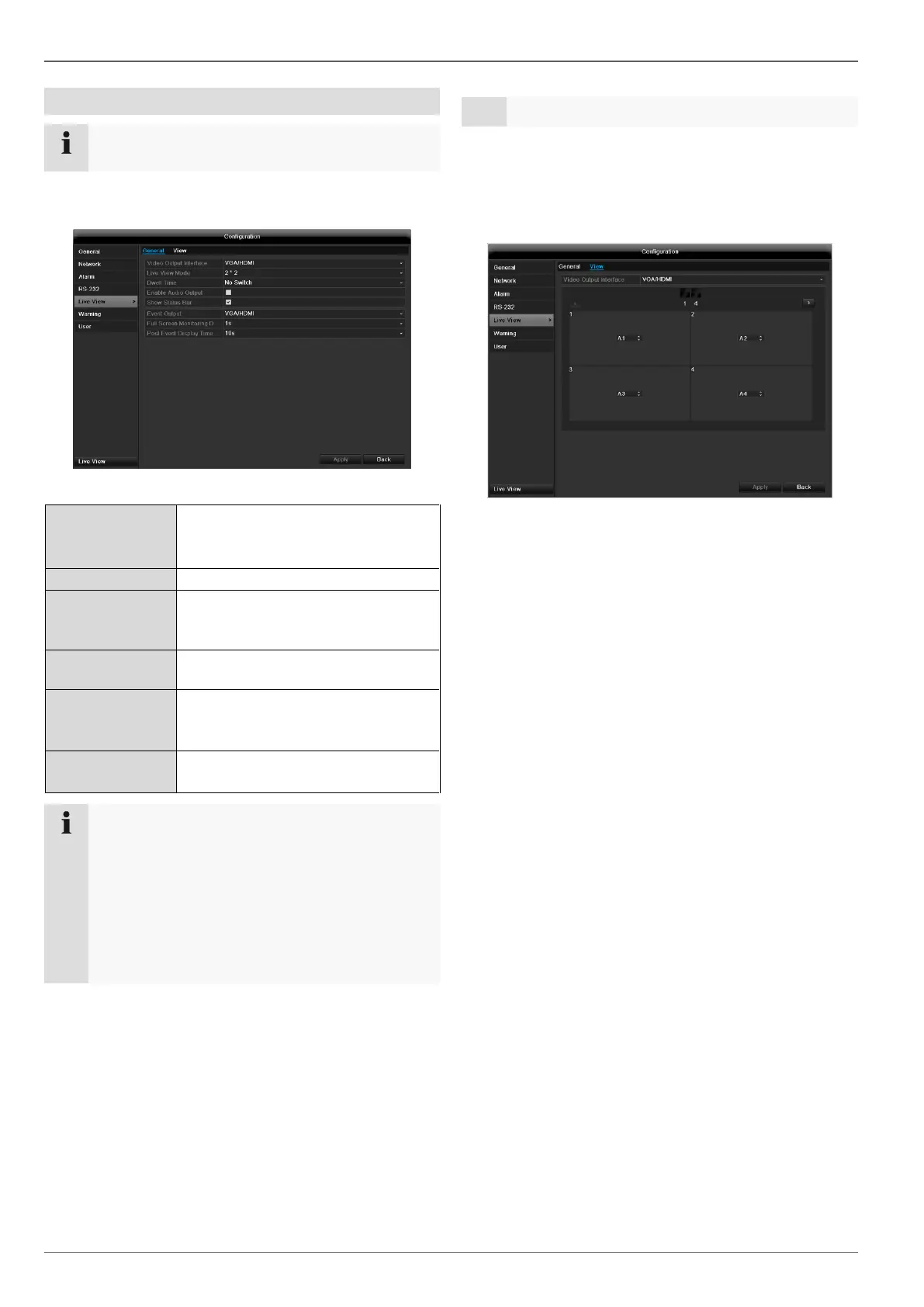 The live view can be set as follows.