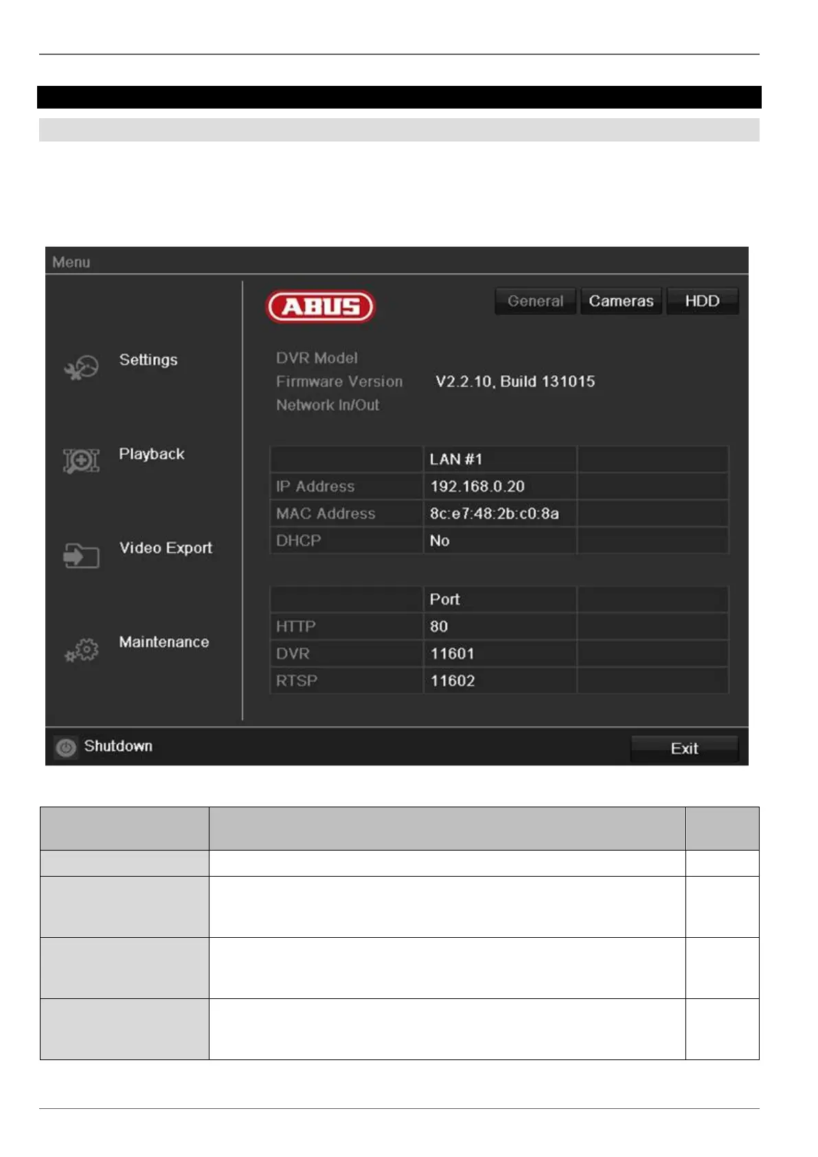 Includes the menus Configuration, Camera, Record, HDD, Playback.