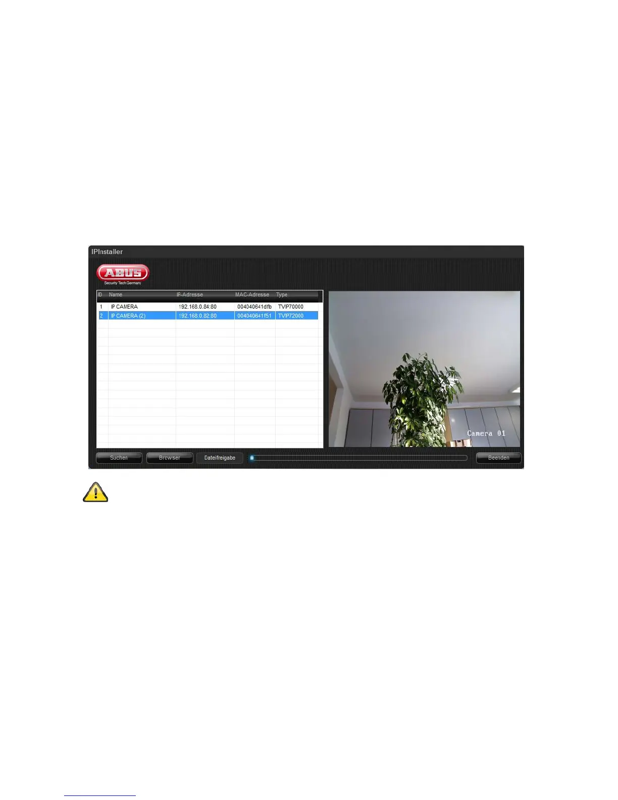 After the installation wizard is started, it searches for all connected ABUS IP network cameras and video
