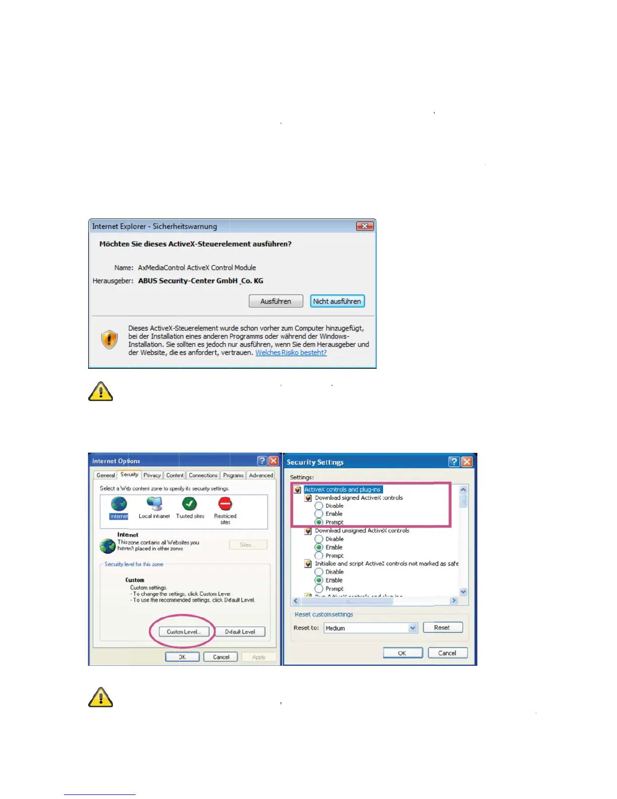 Abus TVIP10005B - Dostęp Do Kamery Sieciowej Z Przeglądarki WWW; Instalacja Wtyczki Activex; Dostosowanie Ustawień Bezpieczeństwa