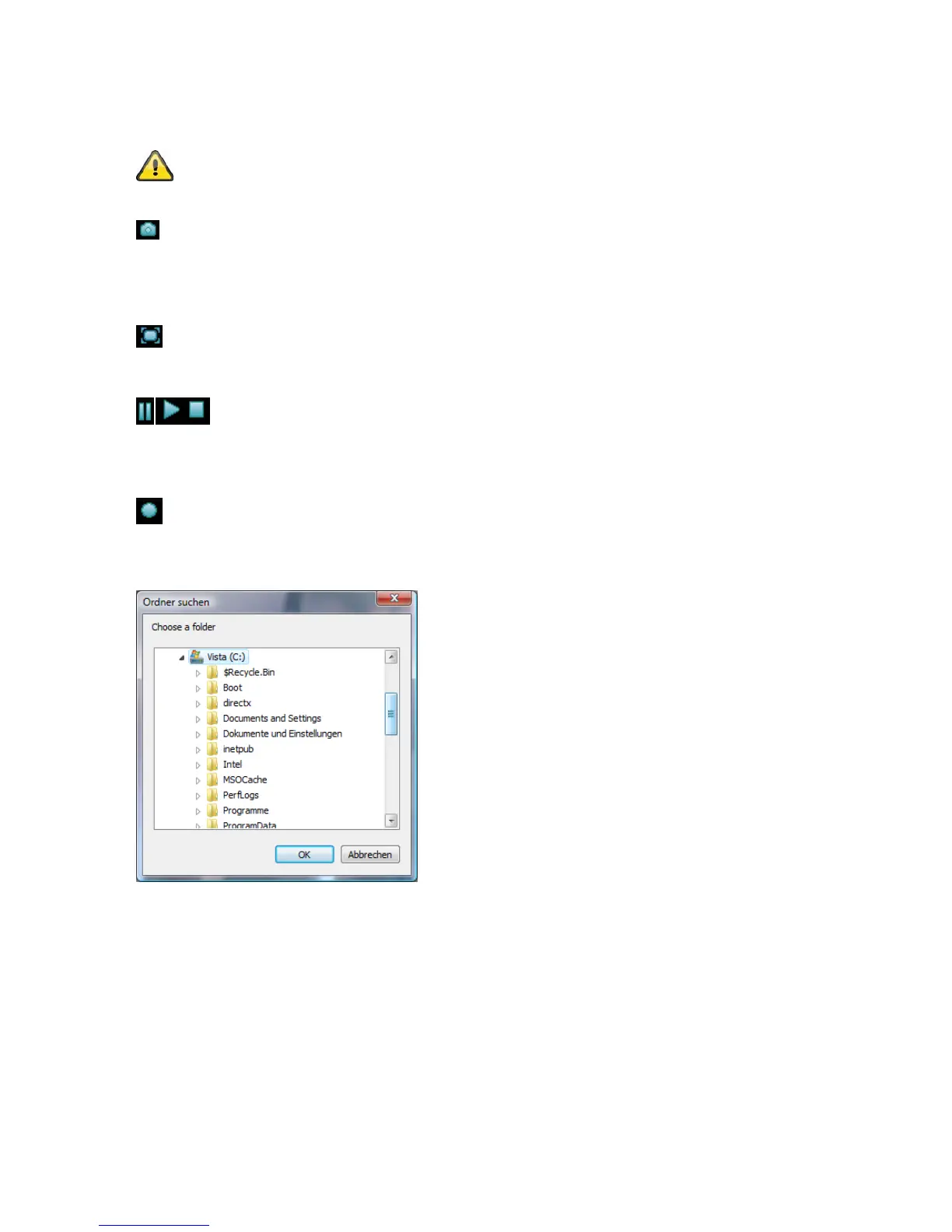 En optagelse til den lokale harddisk kan startes eller stoppes. Ved at klikke på knappen åbnes Windows