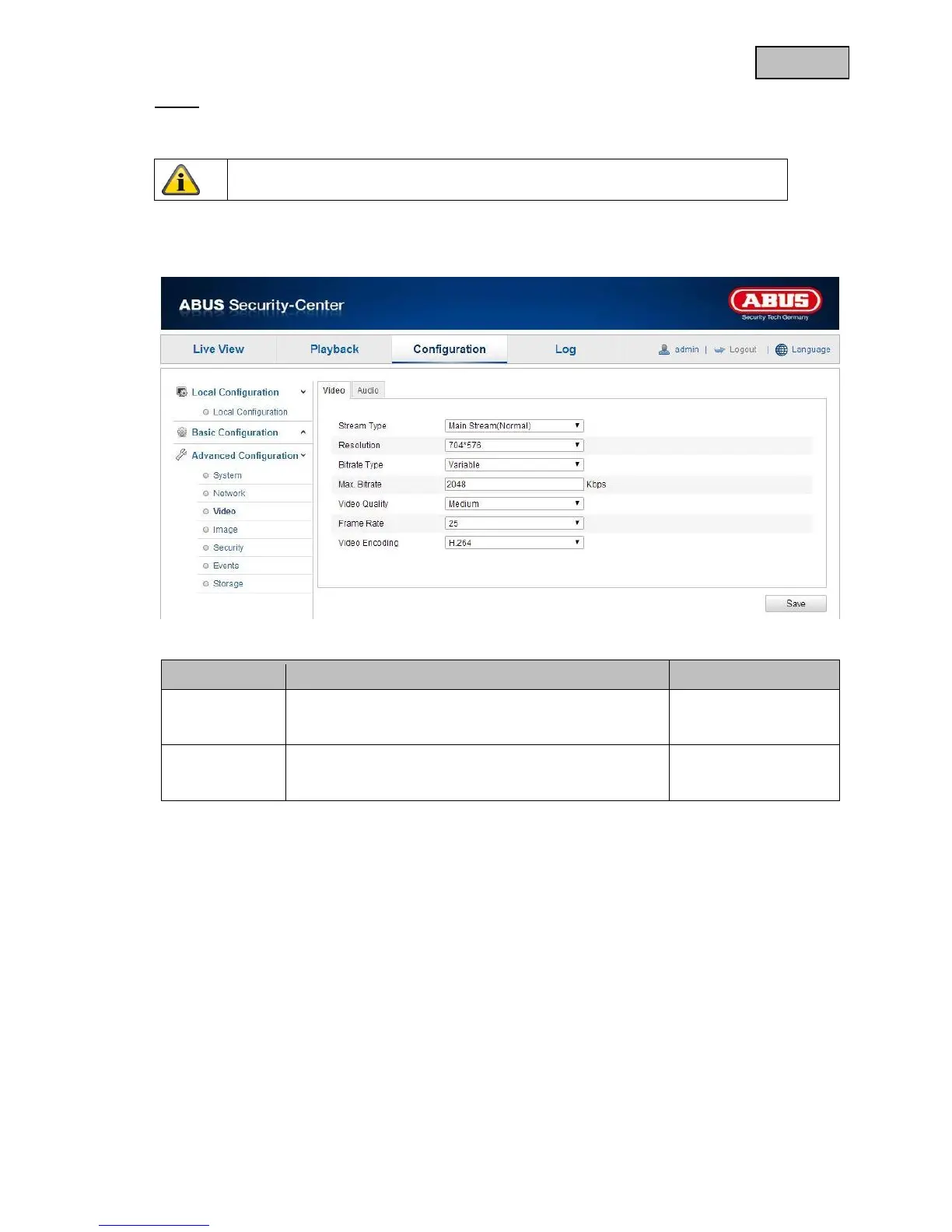 Abus TVIP11560 - Video and Audio Settings