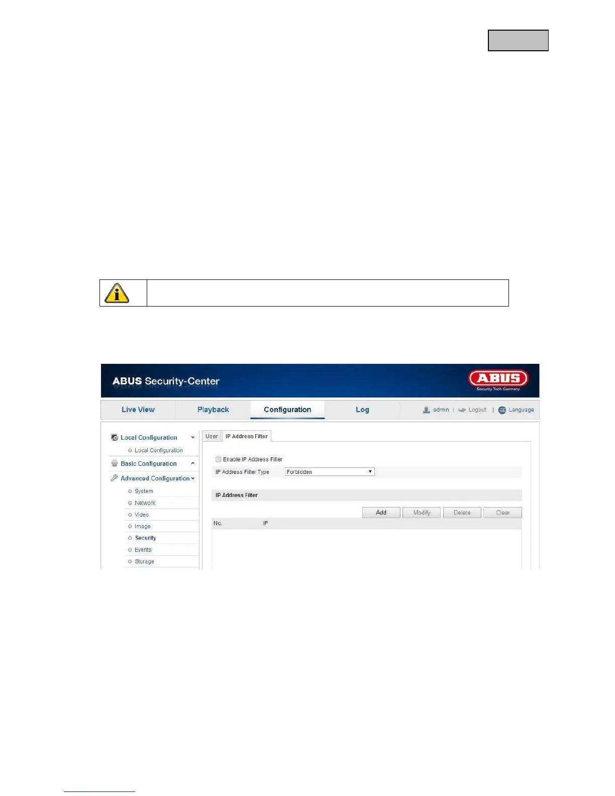 Here you assign the password that the corresponding user needs to enter for access to the camera.