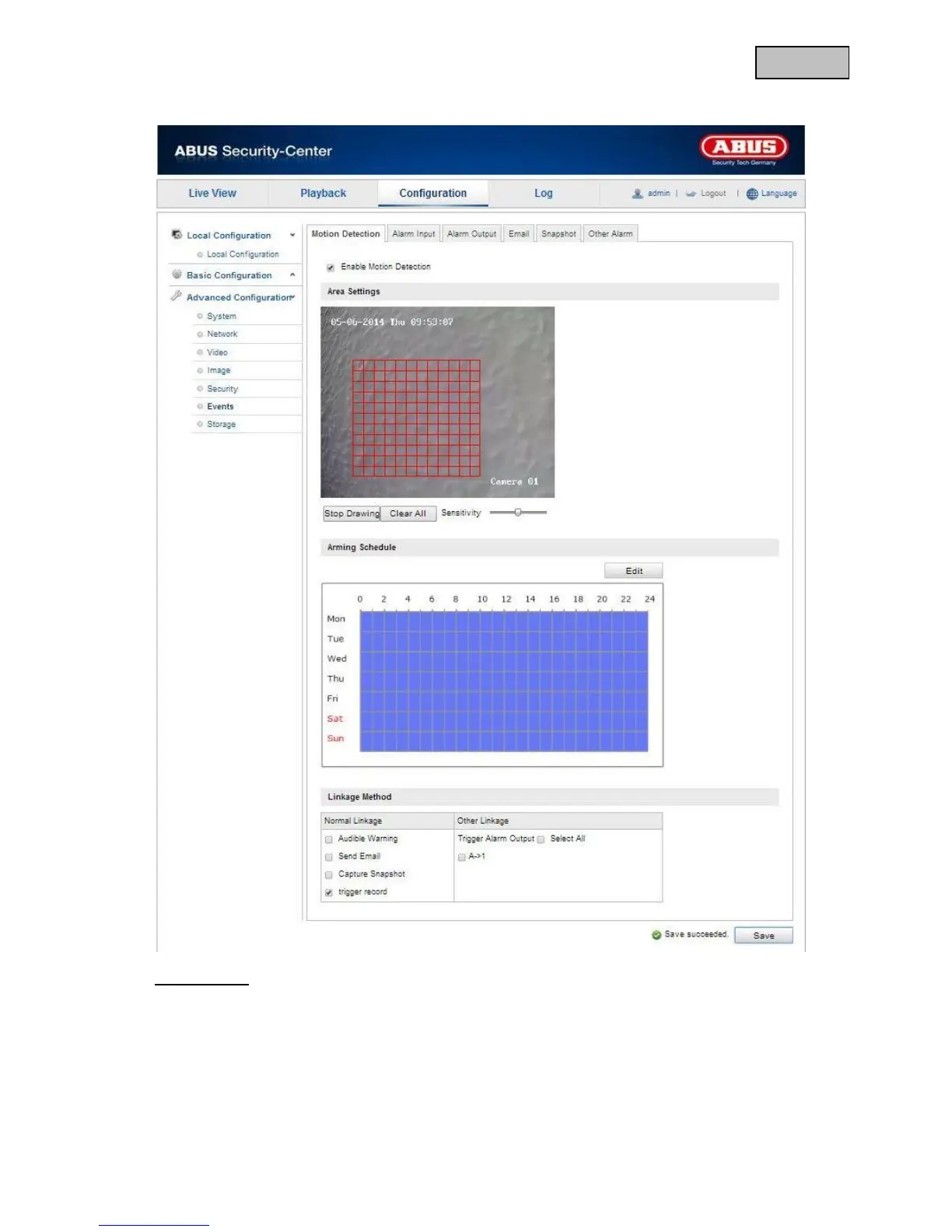 Activate motion detection by clicking the “Enable Motion Detection” checkbox.
