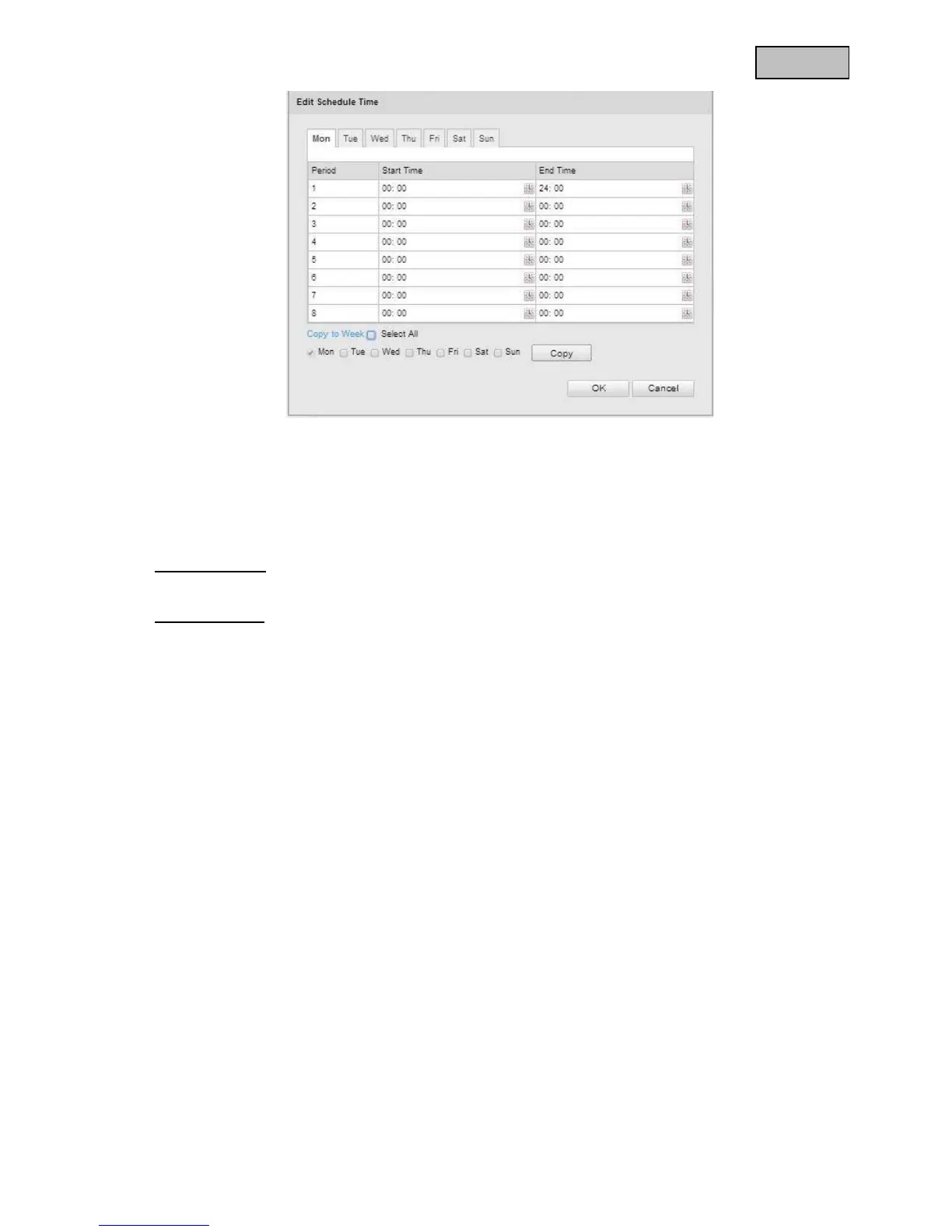 To activate the alarm input all day, select 00:00 as the start time and 24:00 as the end time.