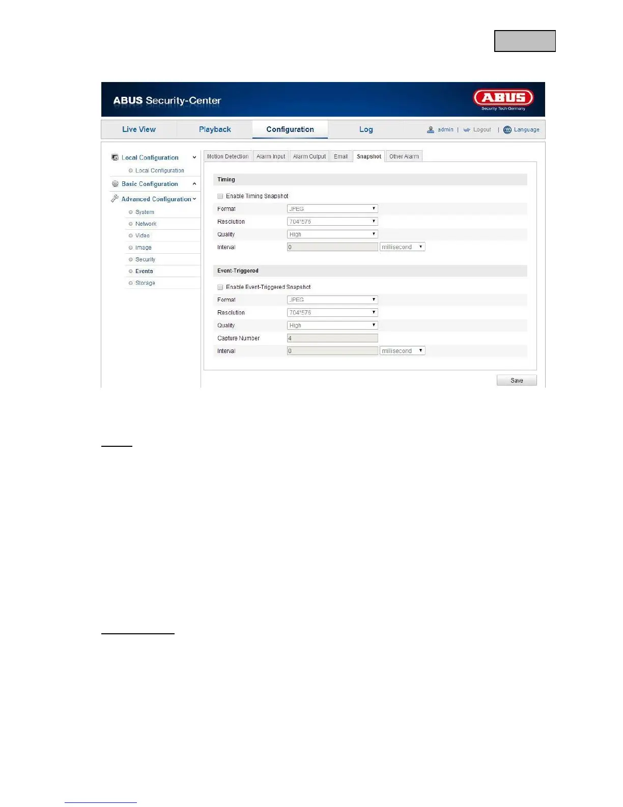 You can make the configuration for time and event-controlled snapshots here to save them on the micro