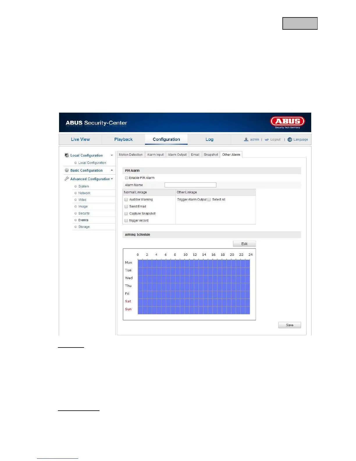 You can specify a name for the alarm input here. Do not use the alarm input number or any special