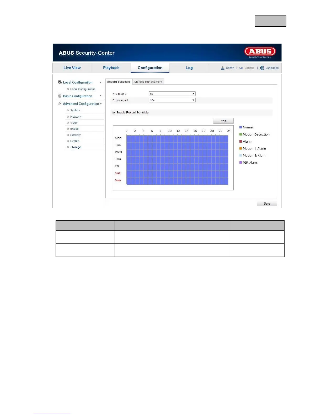 Abus TVIP11560 - Storage Settings