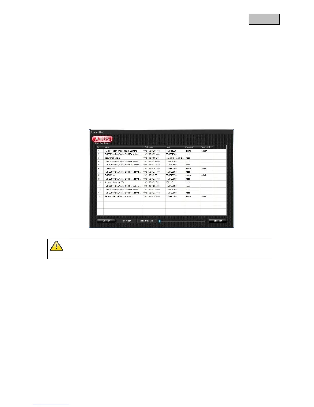 Une fois que l’assistant a démarré, il détecte toutes les caméras réseau ABUS et tous les serveurs vidéo