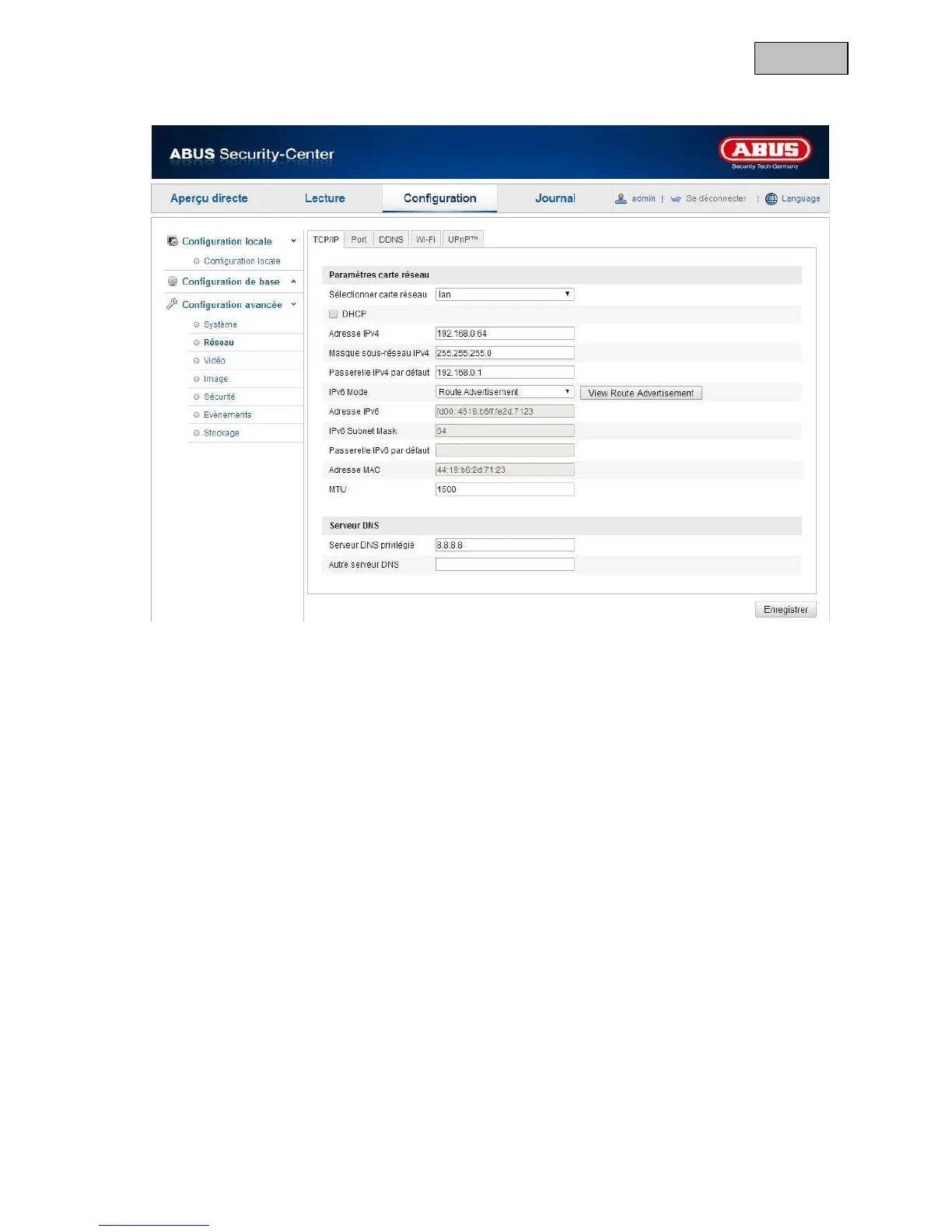 d’autres réglages réseau. Les données sont reprises automatiquement du serveur et ne peuvent pas être