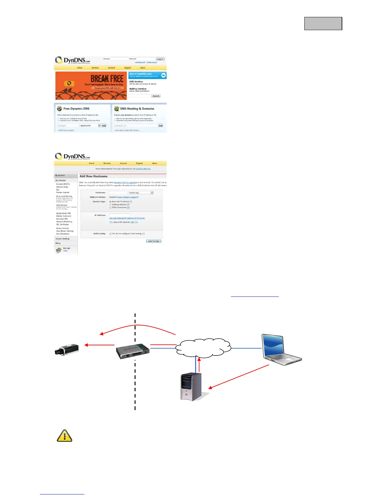 L’illustration suivante représente l’accès à une caméra réseau raccordée à un routeur par DynDNS.org.