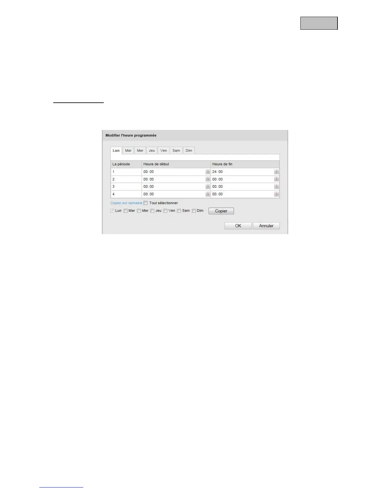 Pour reprendre les réglages pour tous les jours de la semaine, cliquez sur la case « Sélectionner tout ». Pour
