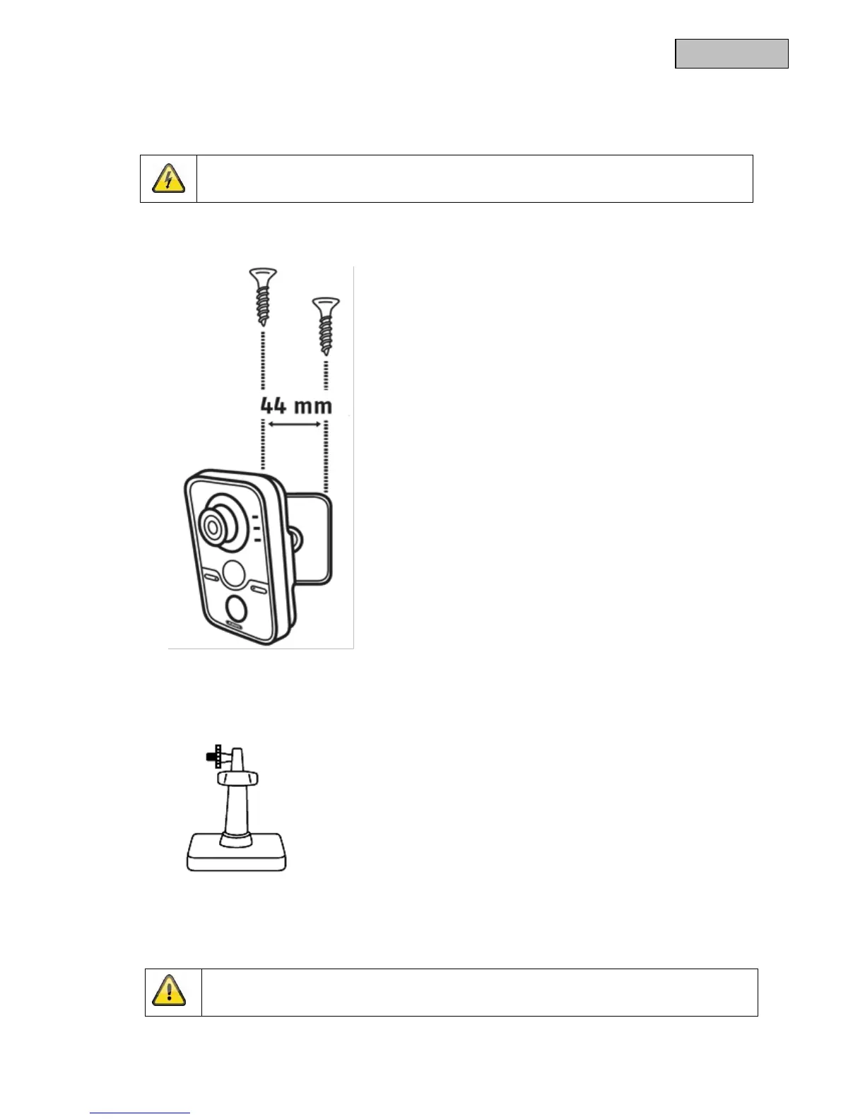 Tijdens de montage moet de camera van de netspanning zijn losgekoppeld.
