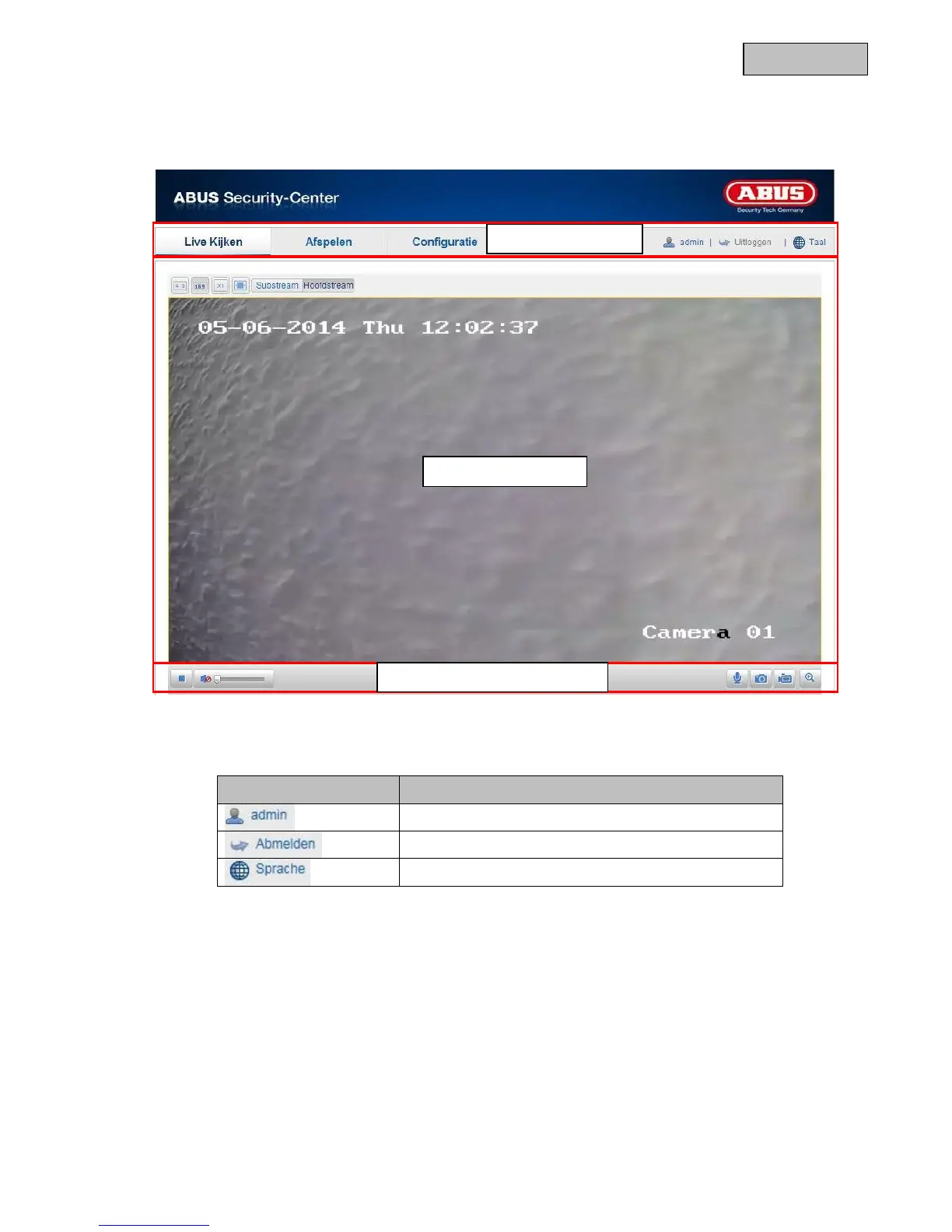 Abus TVIP11560 - 10 Gebruikersfuncties; Menubalk; Livebeeldweergave; Audio-;Videobesturing
