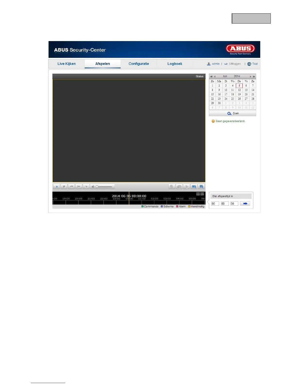 In de tijdbalk worden de opnames van de gekozen dag weergegeven. De kleurmarkering geeft de