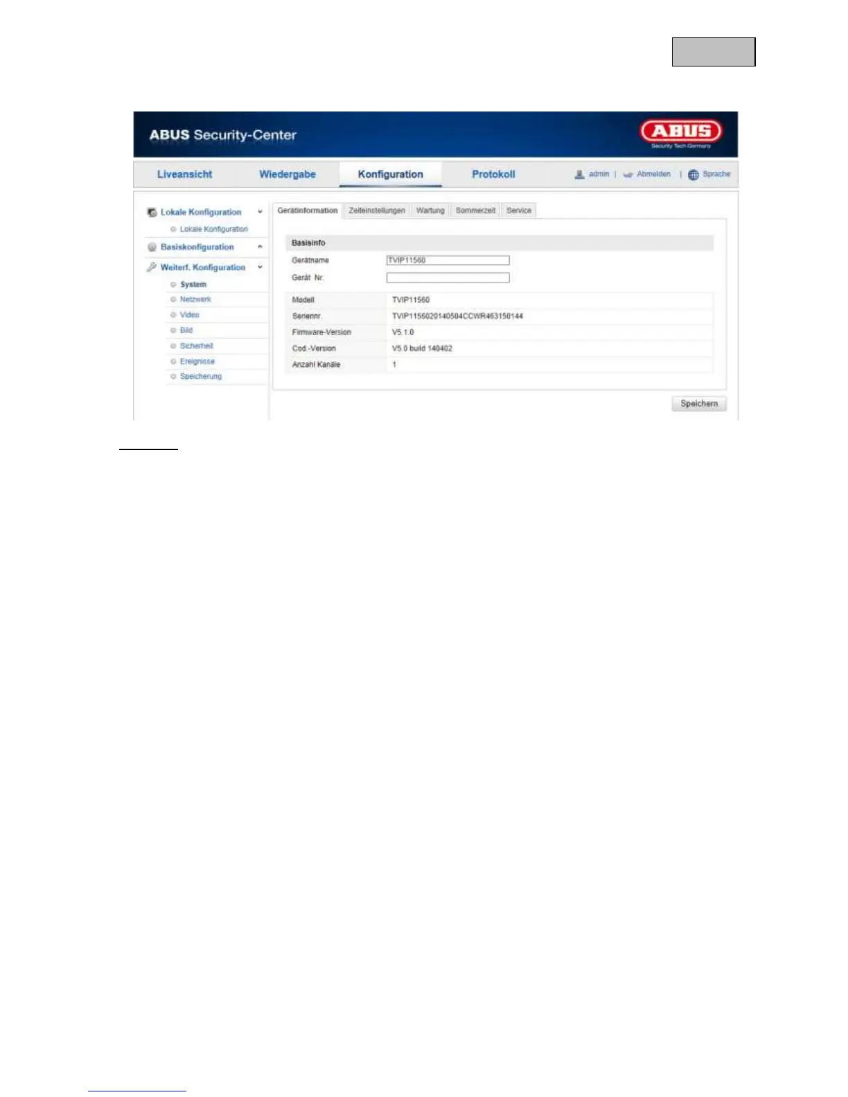 Abus TVIP11560 - Geräteinformation
