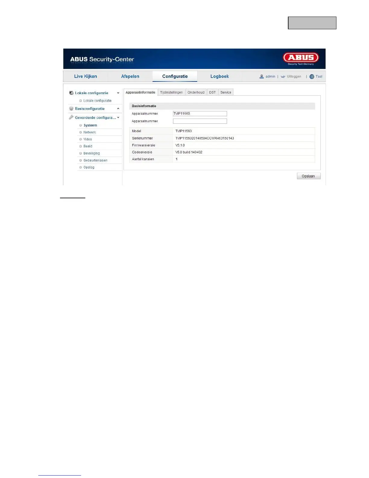 Hier kunt u een apparaatnaam voor de Camera invoeren. Klik op „Opslaan” om deze over te nemen.