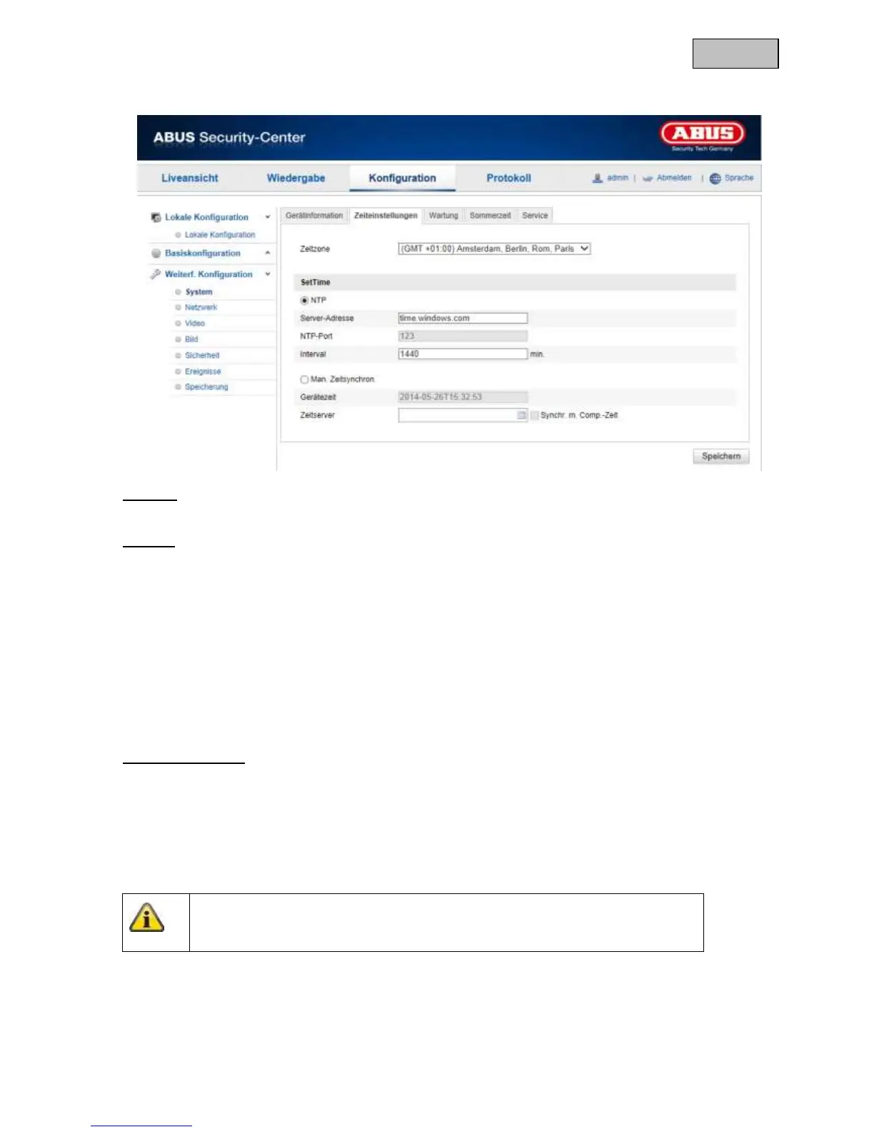Mit Hilfe des Network Time Protokolls (NTP) ist es möglich, die Uhrzeit der Kamera mit einem Zeitserver zu