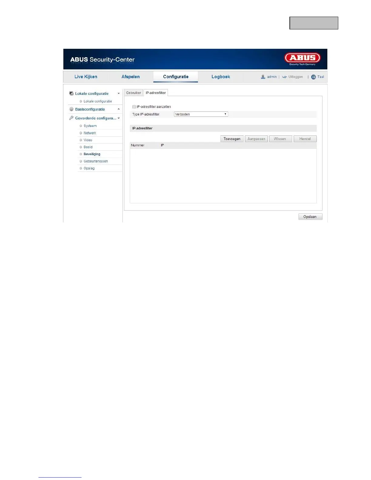 Toegestaan: De hieronder gedefinieerde IP-adressen worden voor een toegang tot de camera