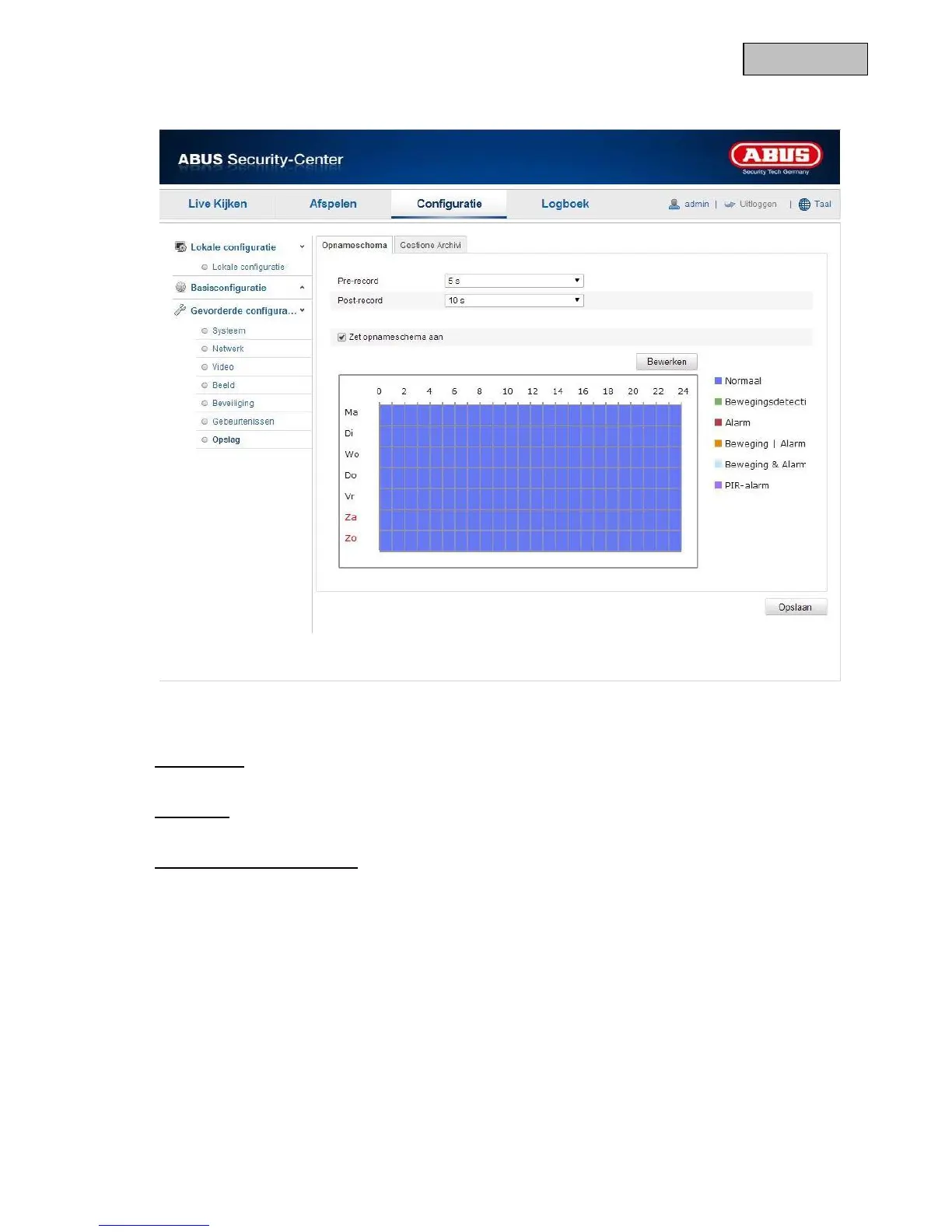 Hier kunt u de configuratie voor tijd- en gebeurtenisgestuurde opnames uitvoeren om deze op de