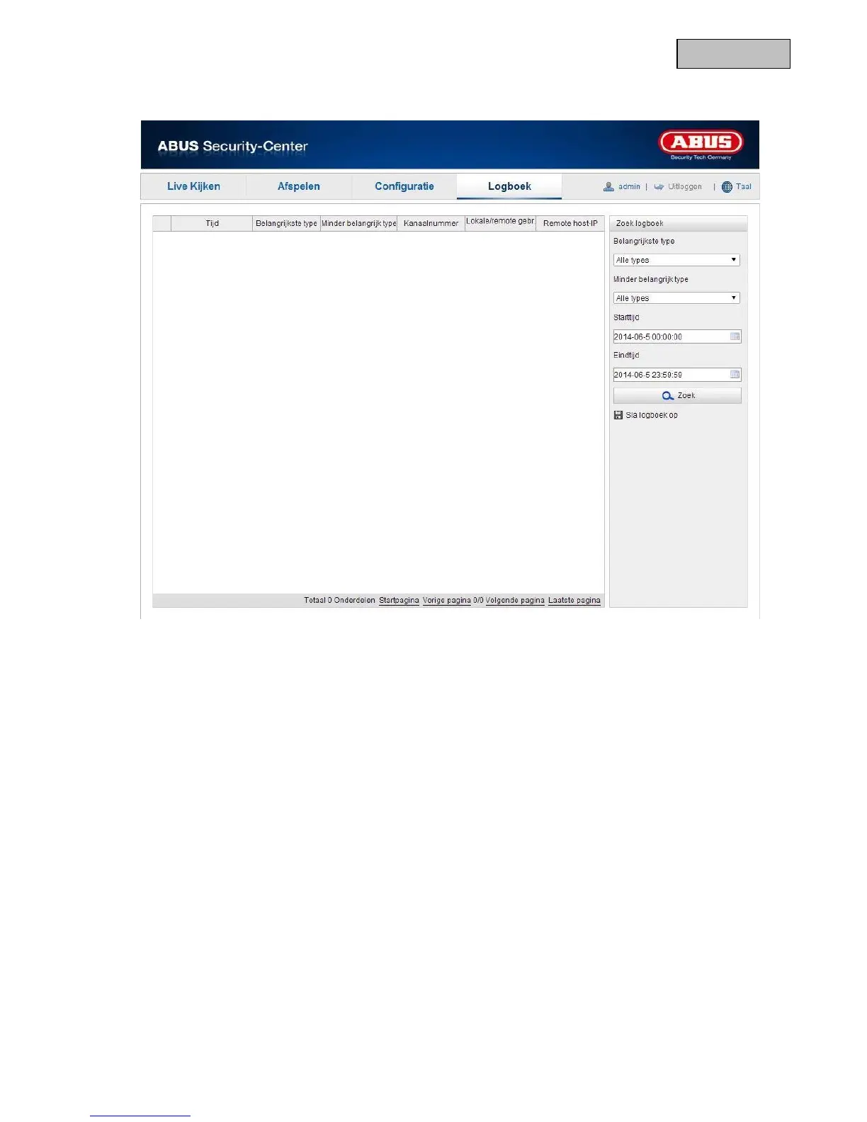 Camera-parameters zoals bedrijf, alarm en opnemen kunnen in protocolbestanden worden opgeslagen.