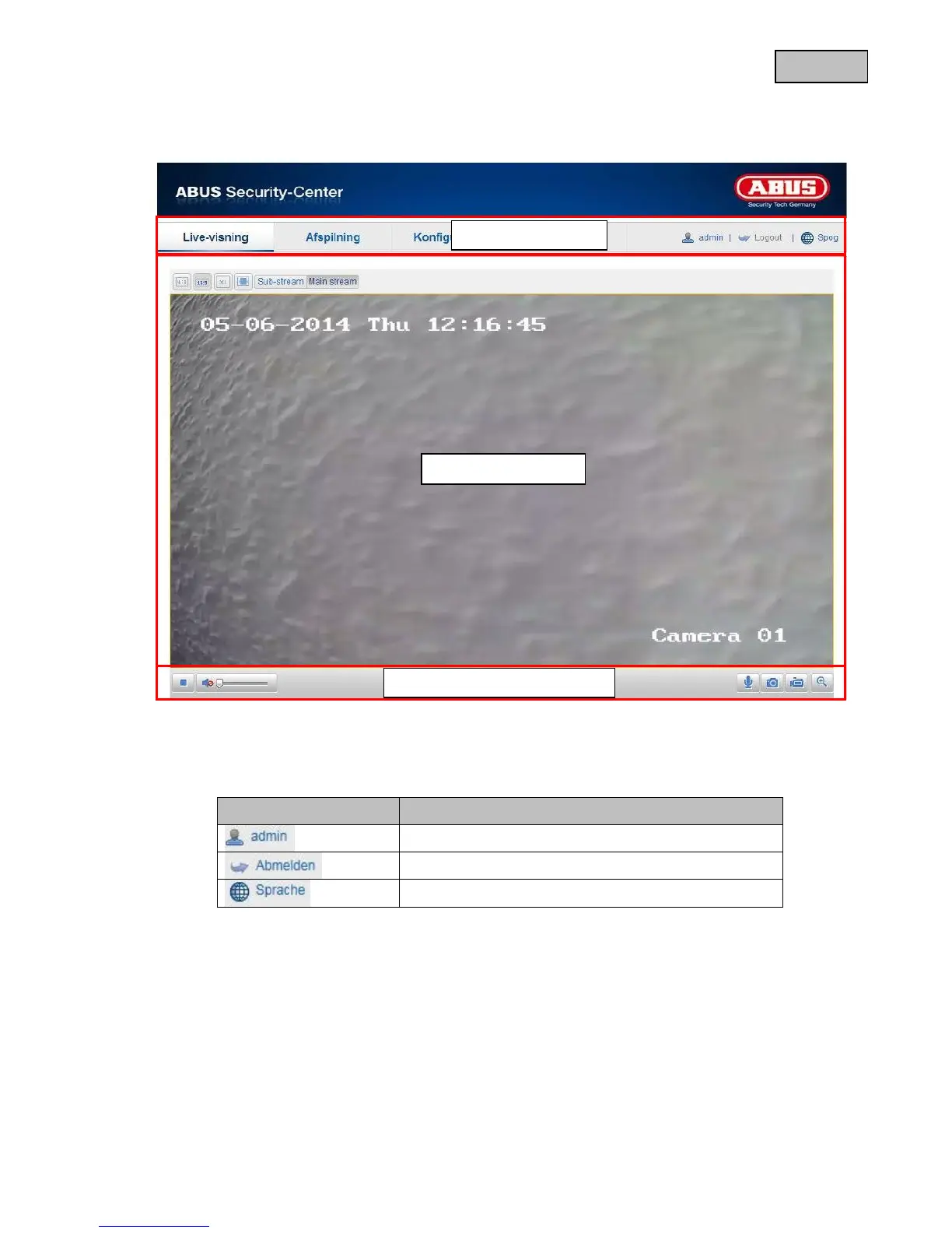 Abus TVIP11560 - 10 Brugerfunktioner; Menubjælke; Live-Billedvisning; Audio;Video-Styring