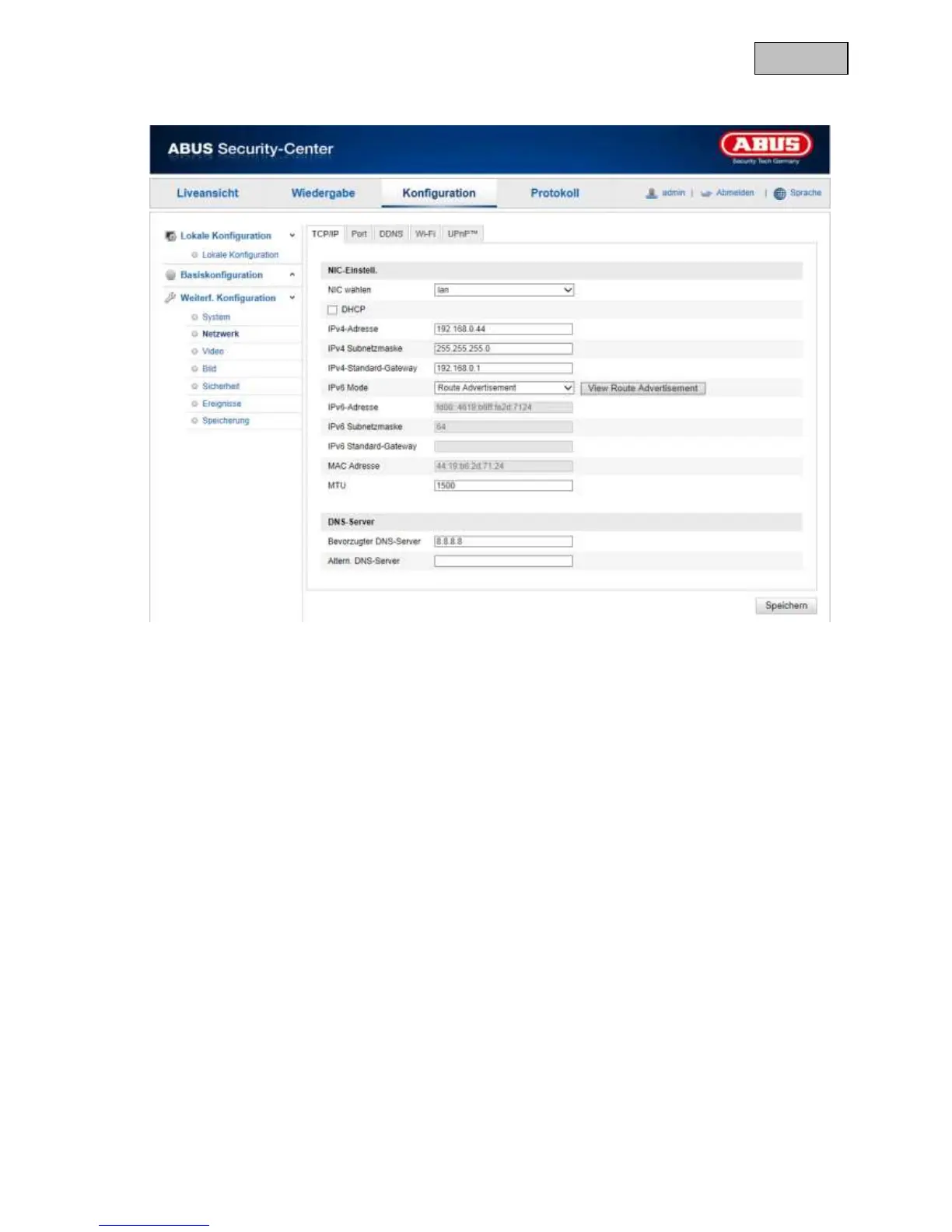 Falls kein DHCP-Server verfügbar ist füllen Sie bitte folgende Daten manuell aus.