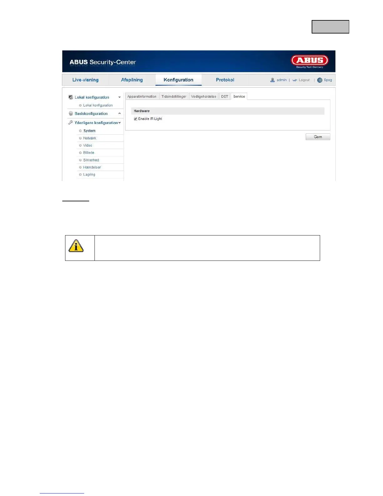 Aktivér IR-lyset, eller deaktivér IR-lyset permanent.