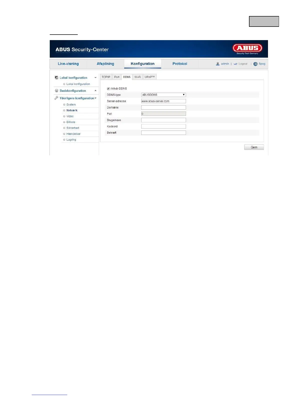 Aktivér checkboksen „Aktivér DDNS“ og vælg herefter DDNS-typen „ABUS DDNS“.