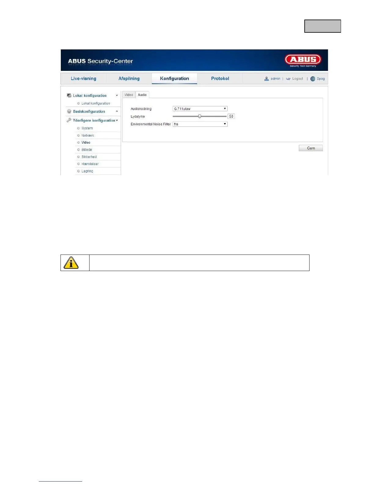 Du kan vælge mellem G.711ulaw; G.711alaw og G.726.