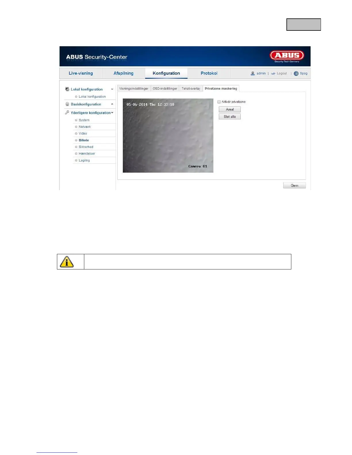 Ved hjælp af privatzoner kan du afskærme visse områder i live-visningen for at forhindre, at disse områder