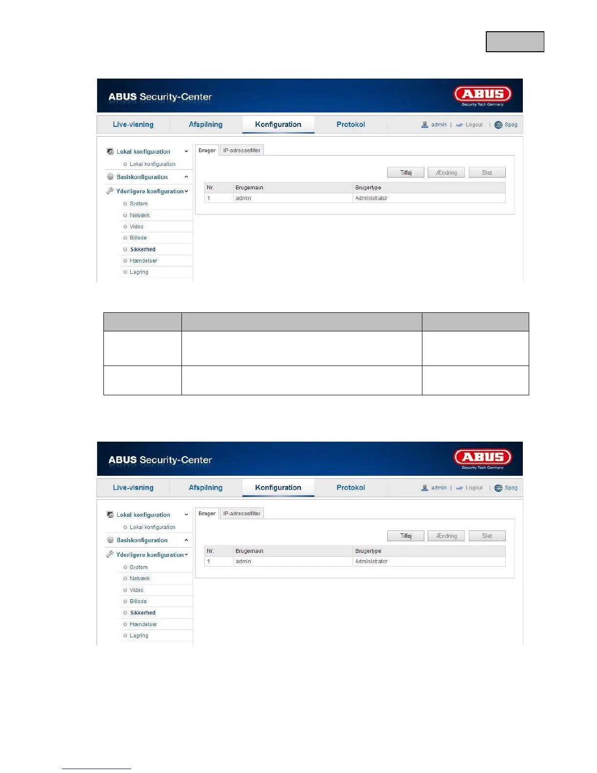For at tilføje eller bearbejde en bruger klikker du på „Tilføj“ eller „Ændring“.