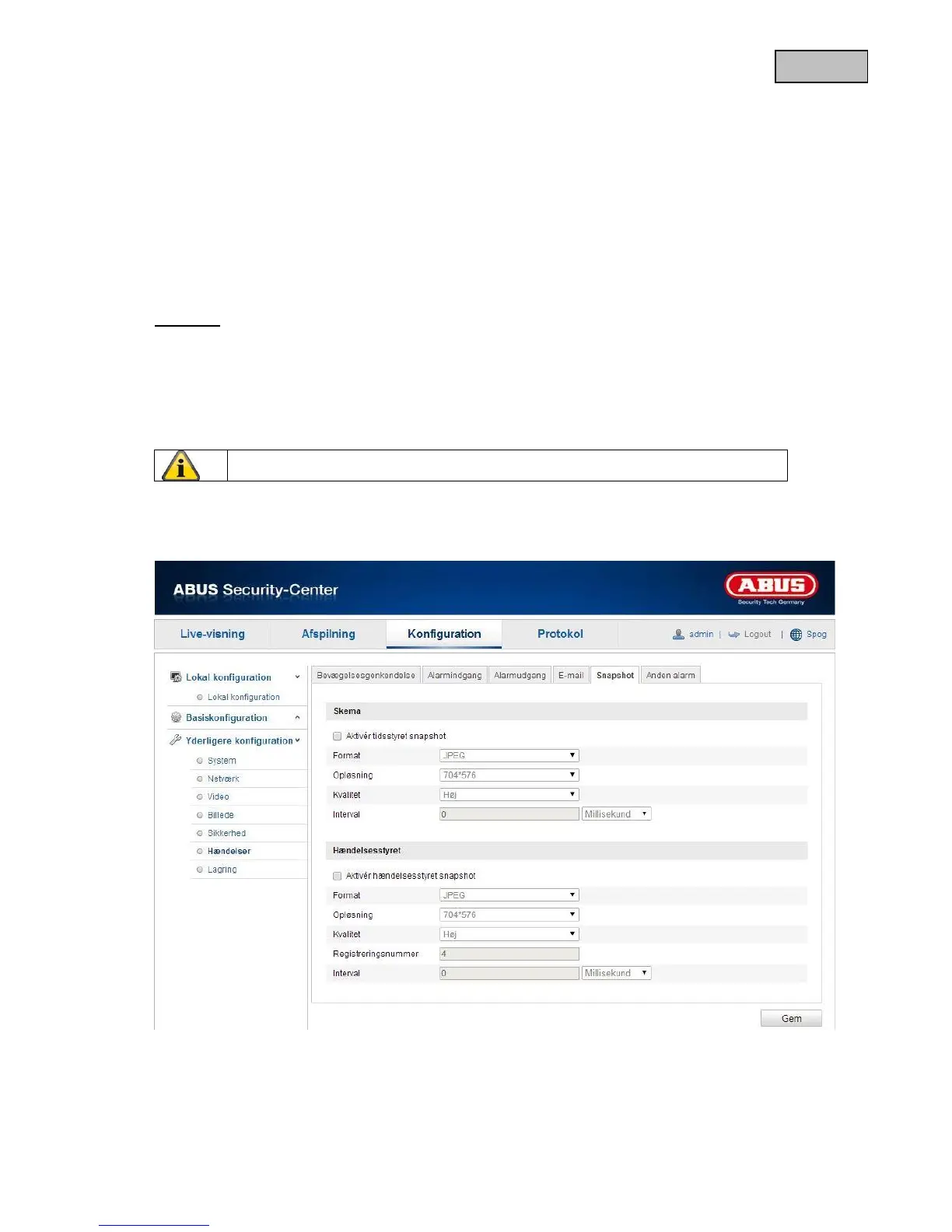Her kan du konfigurere tids- og hændelsesstyrede snapshots for at gemme dem på microSD-kortet.