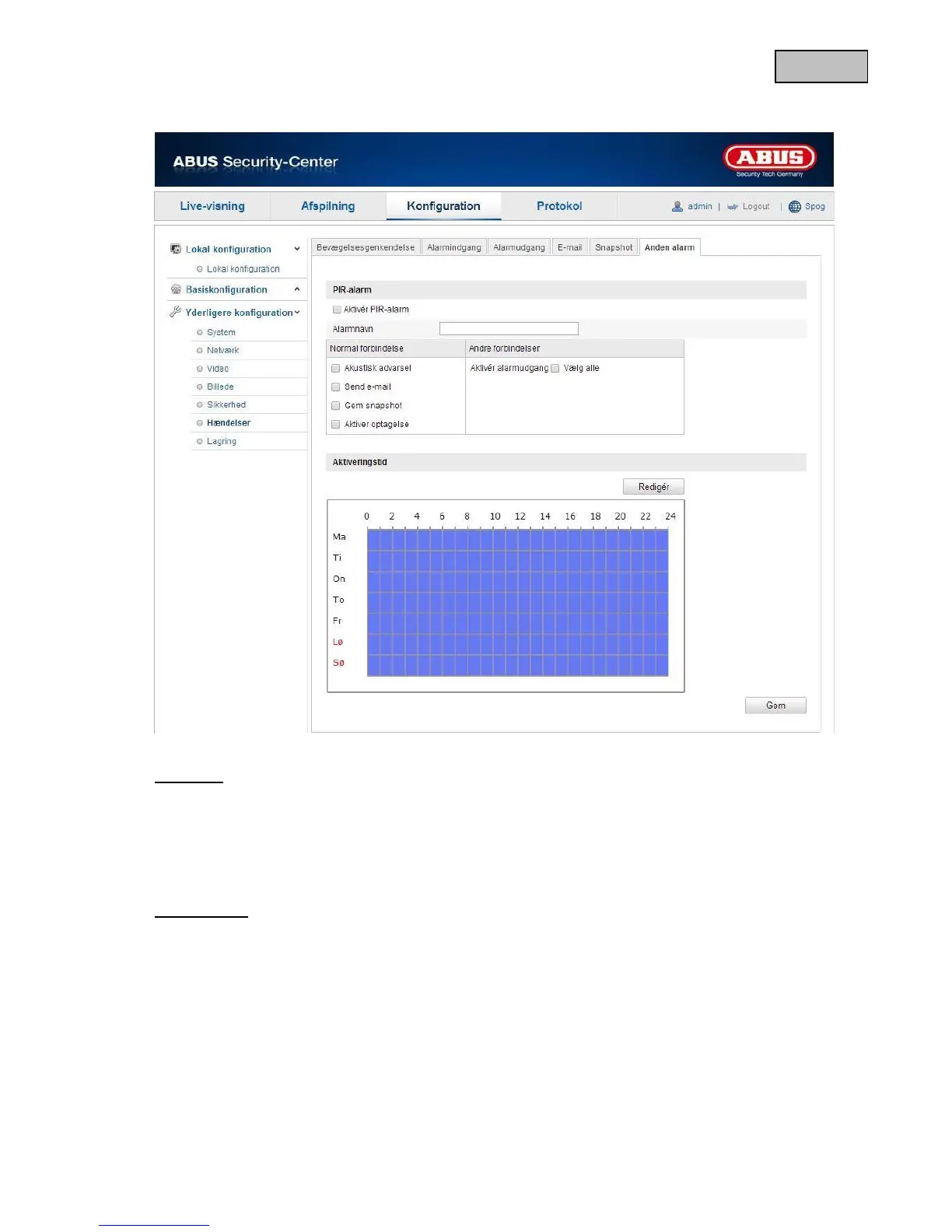 Du kan aktivere PIR-sensoren for at konfigurere en hændelsesstyret aktion.