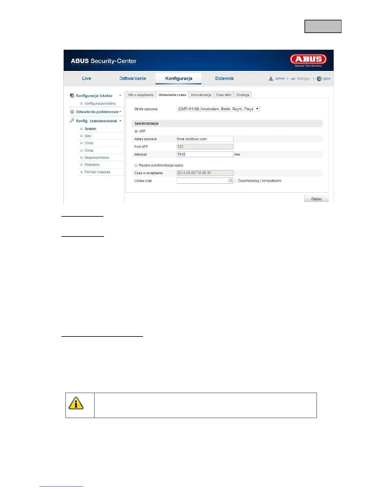 Aby skorzystać z tej funkcji, należy aktywować NTP.