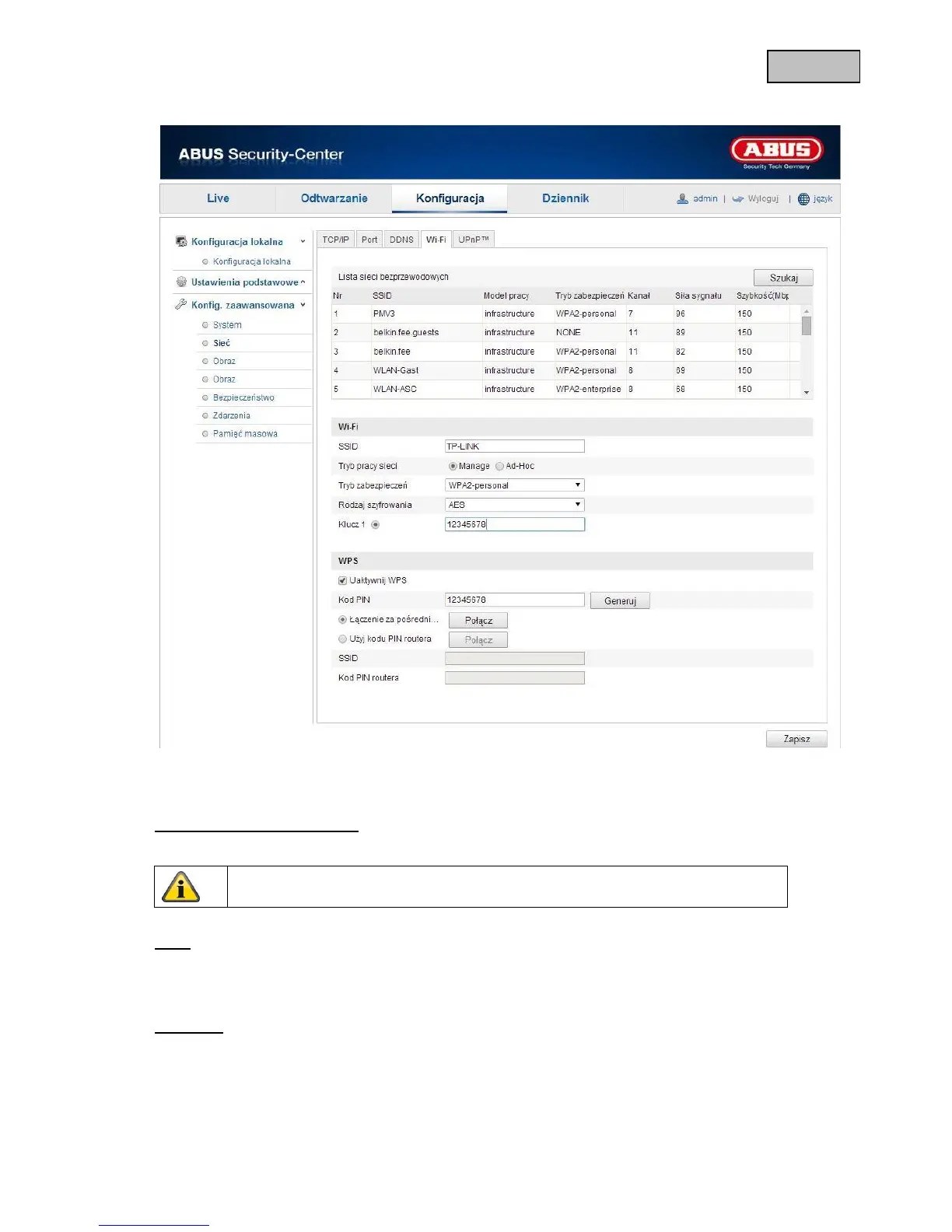W celu utworzenia połączenia Wi-Fi pomiędzy kamerą i routerem należy wprowadzić następujące
