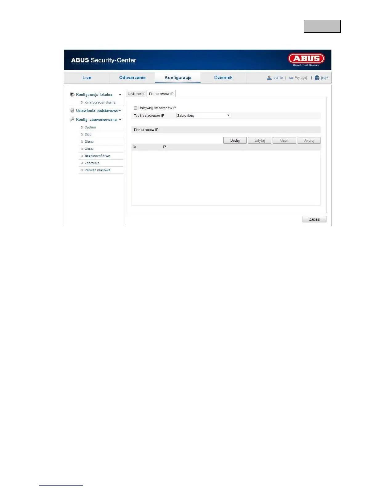 Aktywacja filtra adresów IP