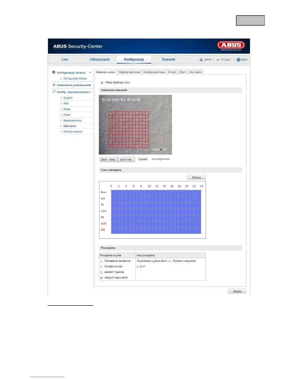 Detekcja jest aktywowana poprzez zaznaczenie pola wyboru „Włącz detekcję ruchu”. Zaznaczenie pola