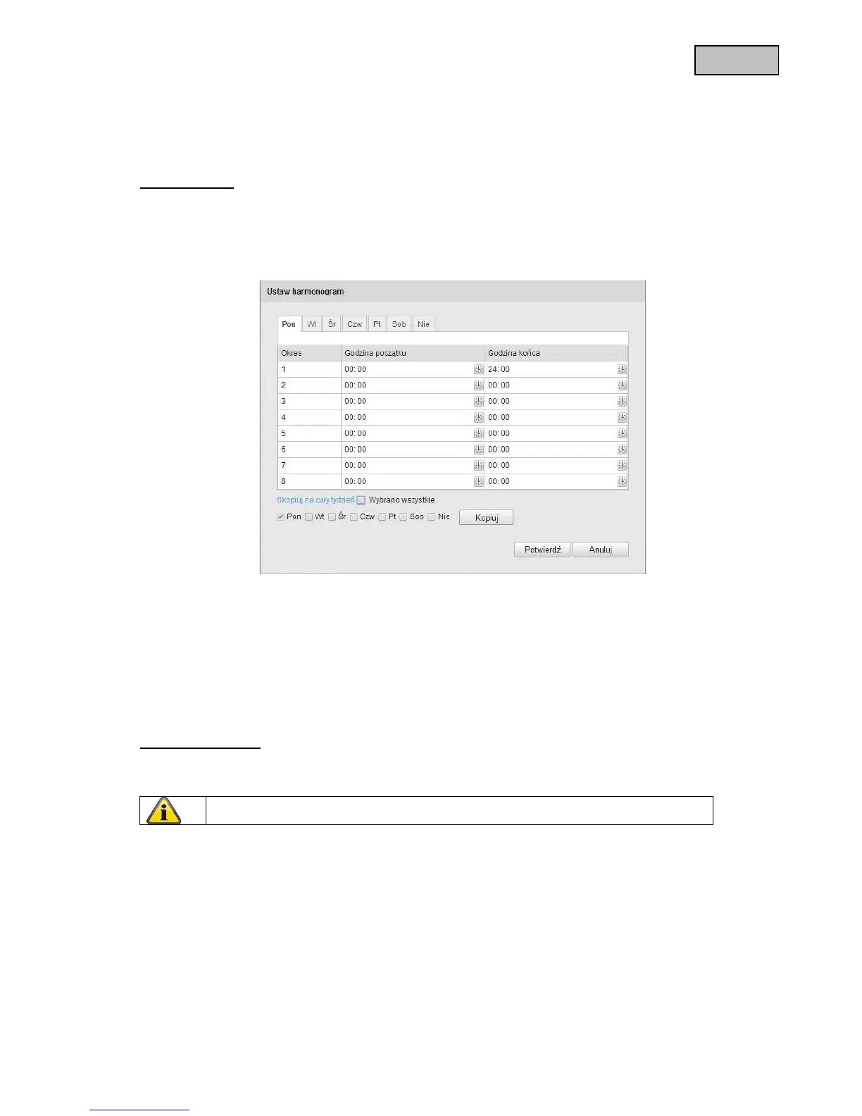 wszystkie”. Aby skopiować detekcję ruchu do innych dni tygodnia, wybierz dzień tygodnia i kliknij „Kopiuj”.