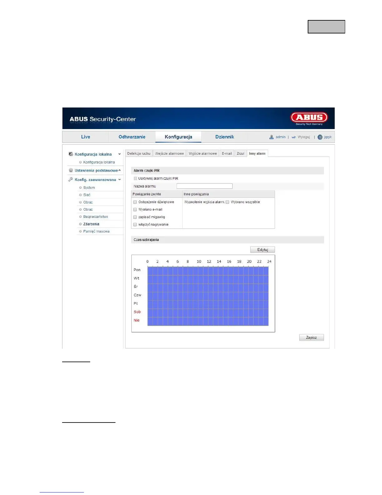 Określ w tym miejscu, jaka czynność powinna zostać wykonana w przypadku alarmu.
