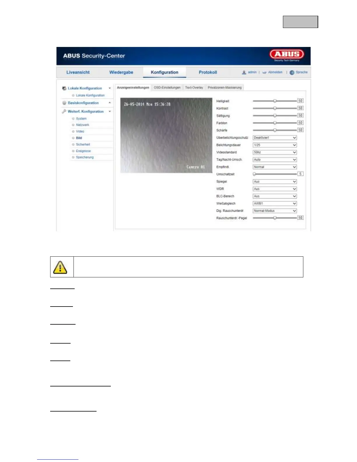 Unter diesem Menüpunkt können Sie die Bildquliät der Kamera, einschließlich Helligkeit, Schärfe, Kontrast,