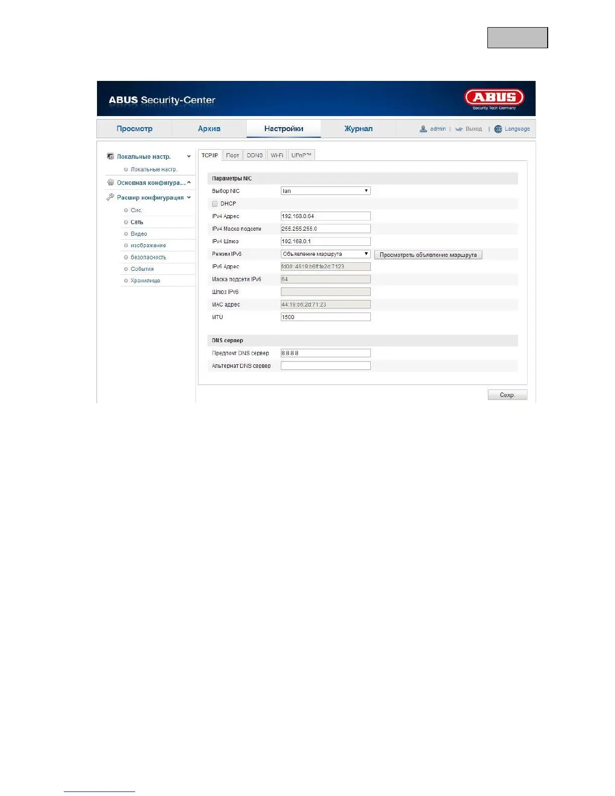 Настройка IP-адреса для камеры