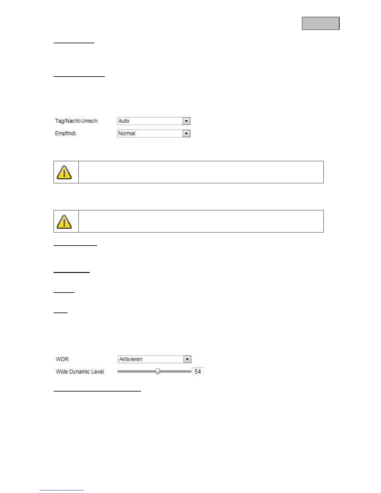 Setzen Sie das Wide Dynamic Level höher um die WDR-Funktion zu verstärken.
