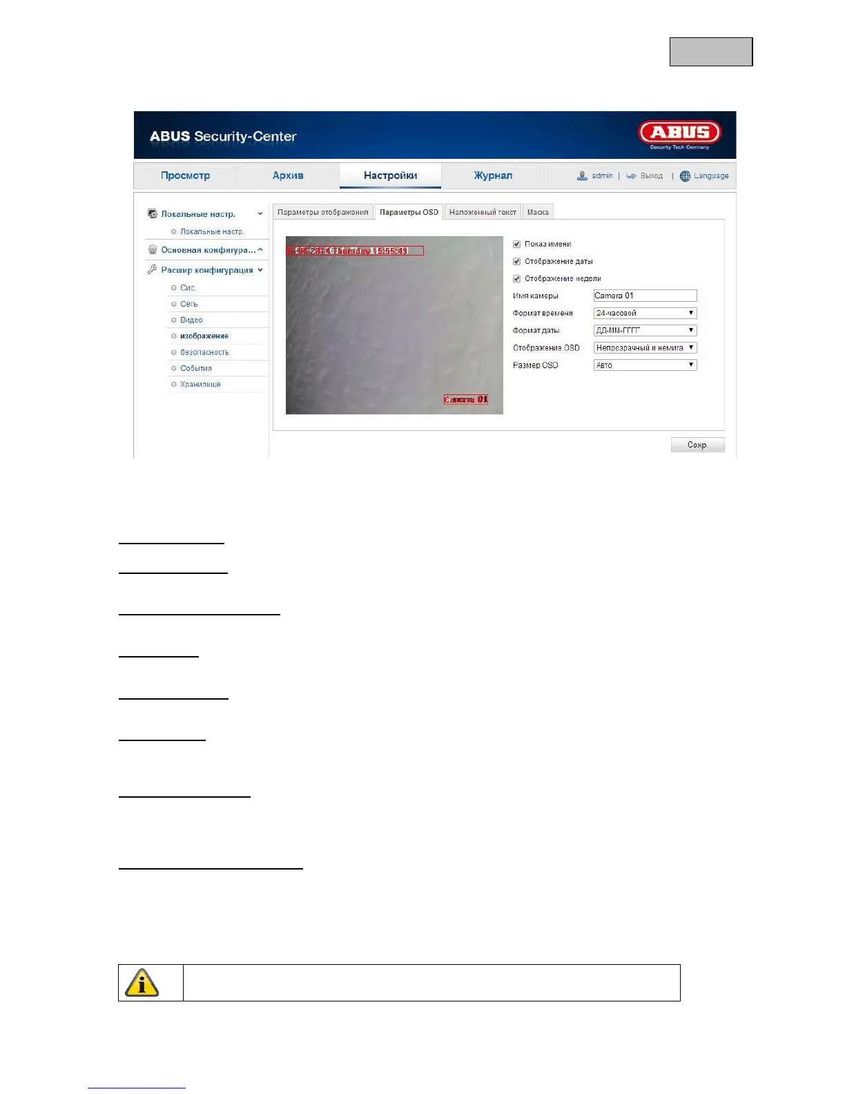 12.3.4.2 Настройки экранной индикации