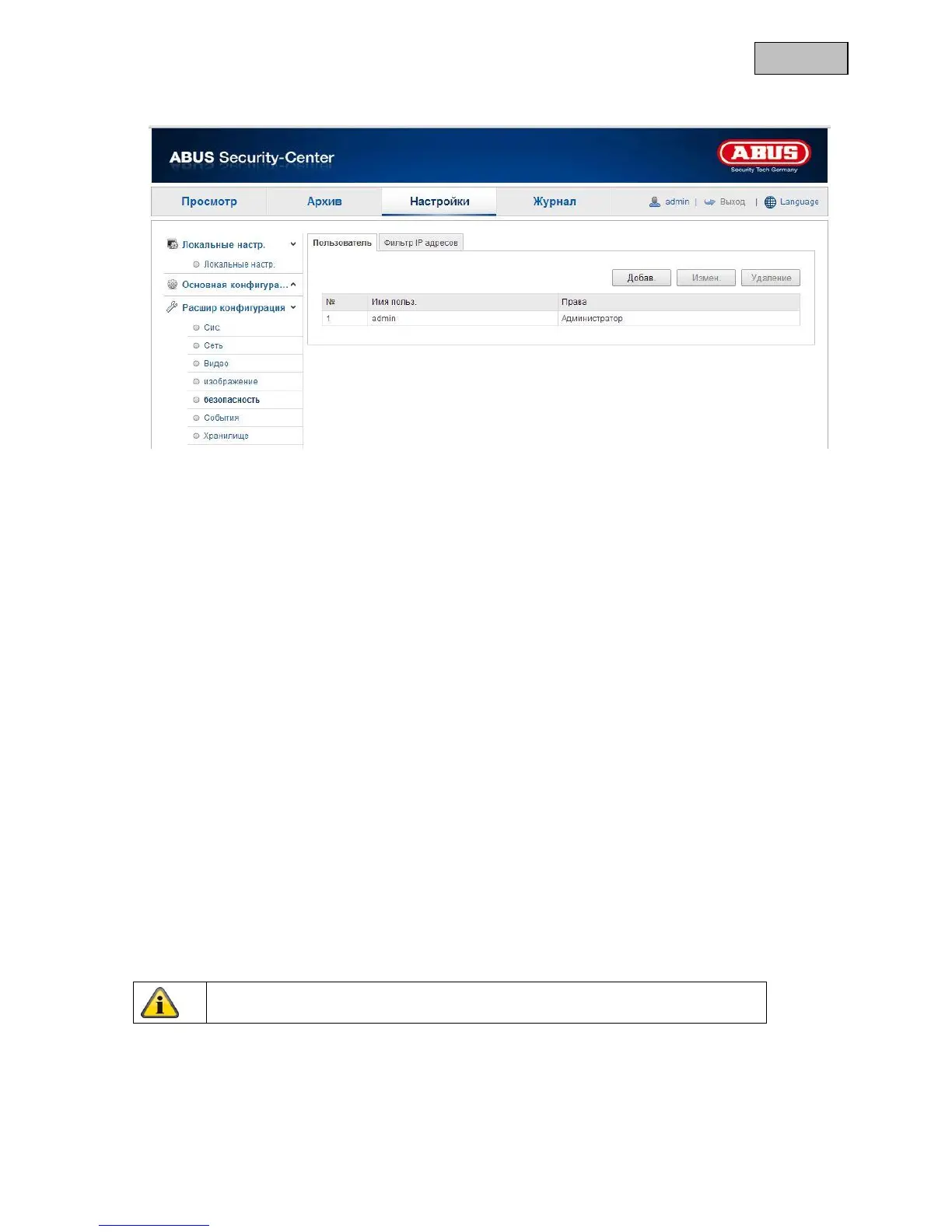 Чтобы добавить или изменить пользователя, нажмите кнопку «Добавить» или «Изменить»